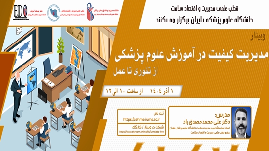 وبینار مدیریت کیفیت در آموزش علوم پزشکی، از تئوری تا عمل گروه خبری : اخبار گروه,تازه های علمی کد خبر : 33546
